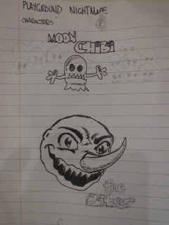 Okay so my son has a wild imagination and from his 6 year old mind comes- Playground Nightmare (his own title)- and to encourage his knack for storytelling, my husband illustrated a couple of the characters. I thought it was pretty cool, my menfolk have such brilliant minds and talent.