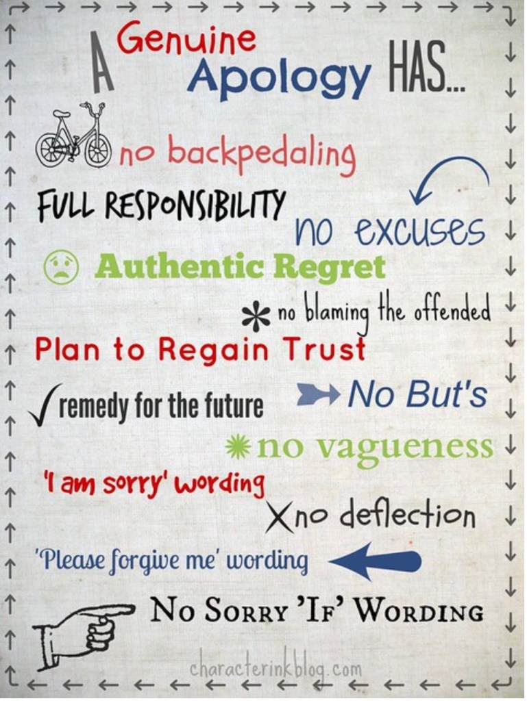 Let’s be reminded to never underestimate the power of a genuine apology- the power in giving one and the power in recognizing one.