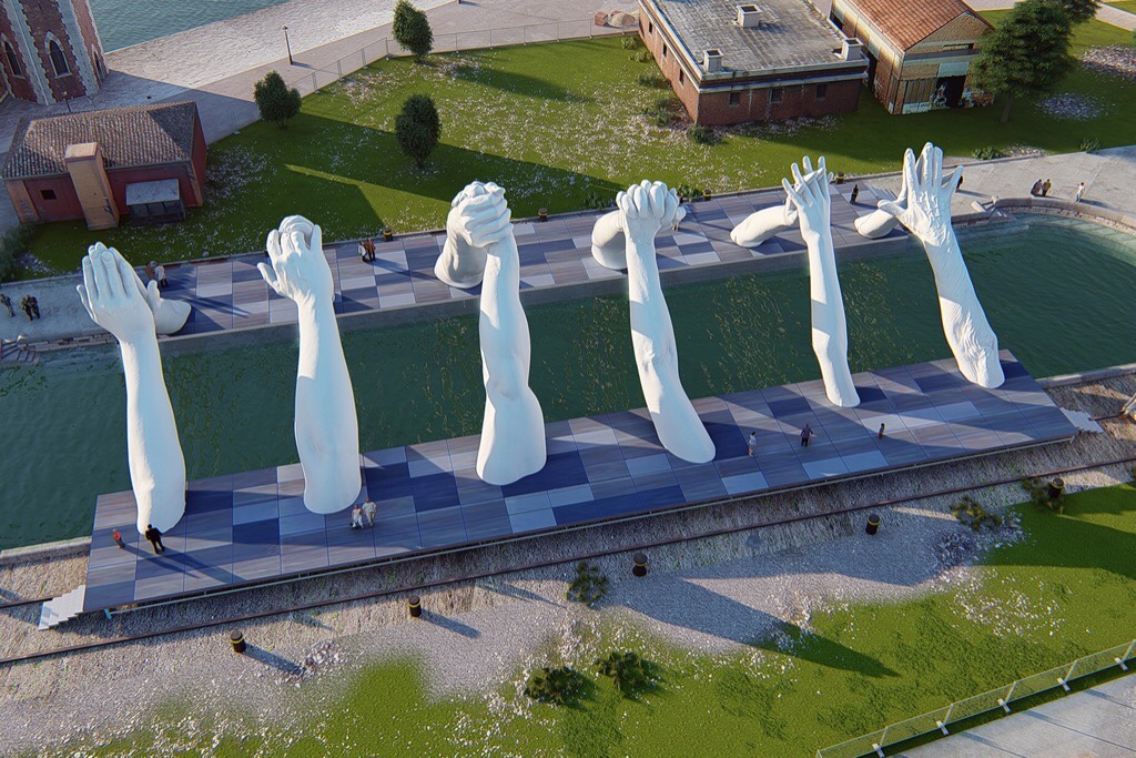 Building Bridges by Lorenzo Quinn; Rendered by Halcyon Art International
